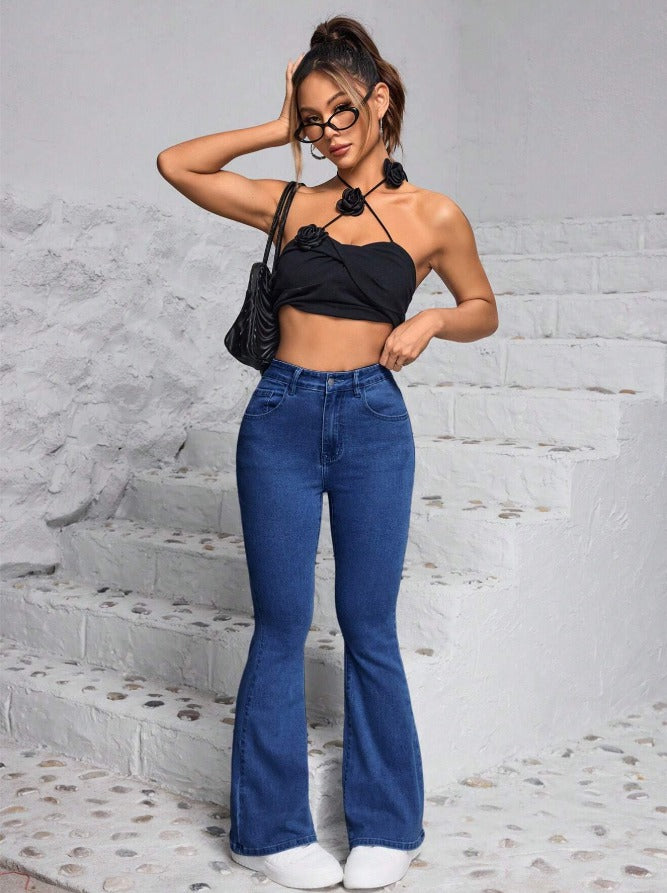 Little Wish Classic Bootcut 1 Button Denim Jeans for Women