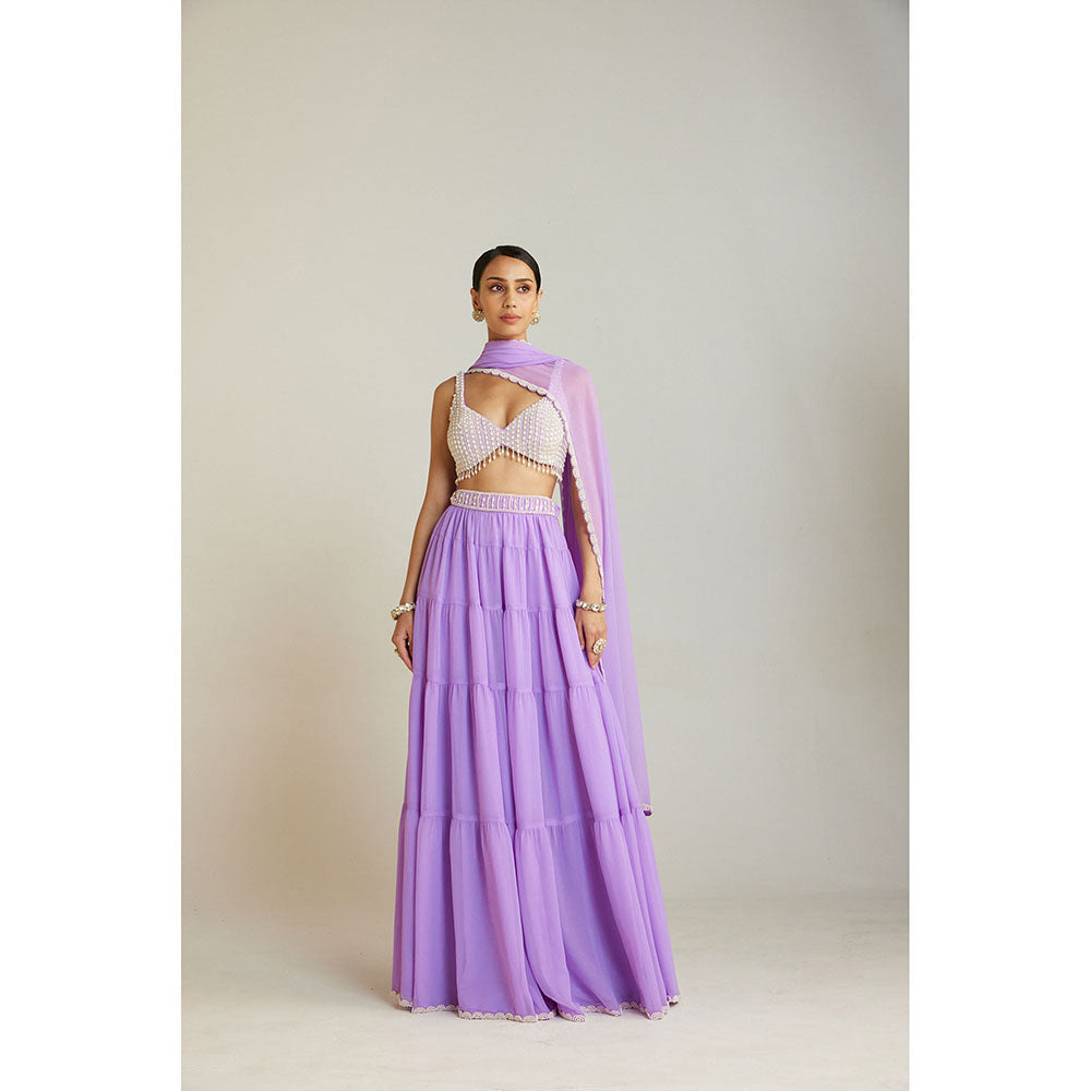 Description : Embrace the ethnically modern styles with this lavender set from Little Wish. Made from high quality georgette, it features hook and eye closure and embellished pattern along with sleeveless & shoulder straps design. Pair it with flats or heels & earrings to elevate your look.Fabric : Georgette Little Wish