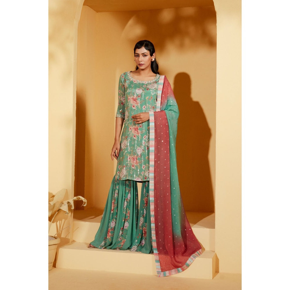 Little Wish Womens Floral Print Sharara with Kurta and Dupatta (Set of 3) – Little Wish Fashion Collection