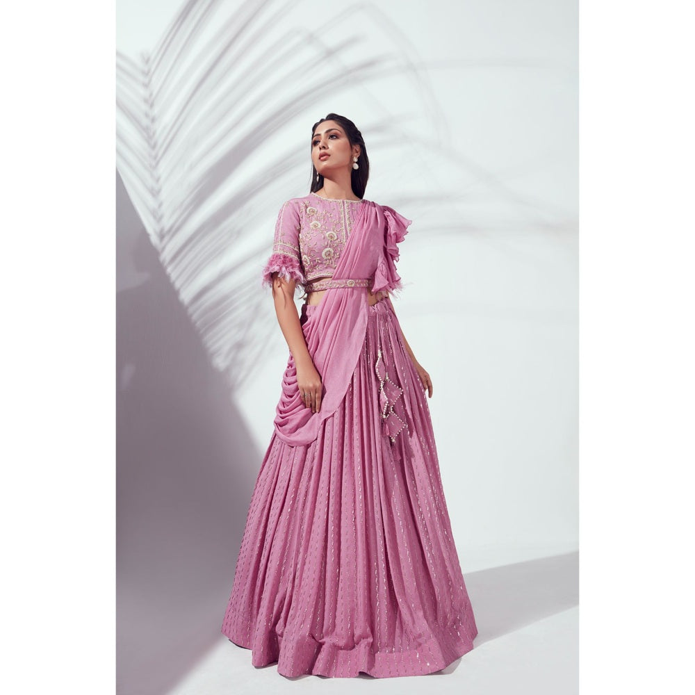 Little Wish Womens Mauve Lehenga with Blouse and Dupatta Belt (Set of 4)