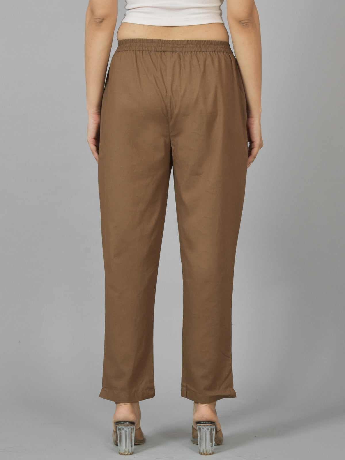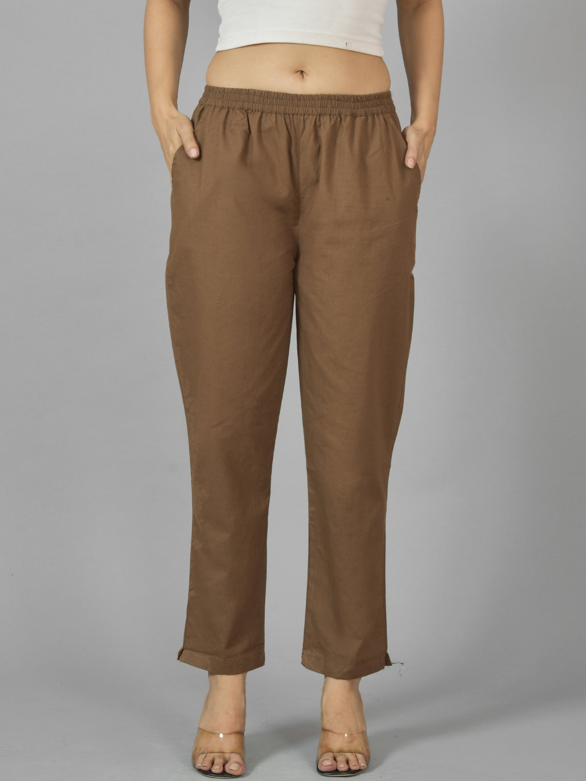 Pack Of 2 Womens Brown And Grey Deep Pocket Fully Elastic Cotton Trouser