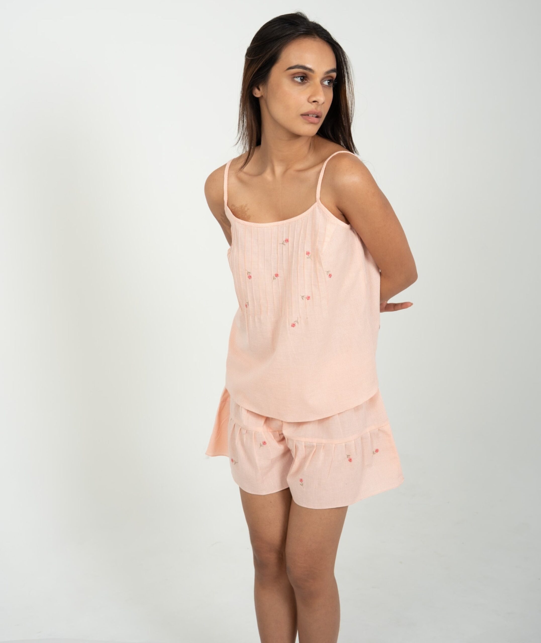 Breezy, feminine, and endlessly charming ? the Peach Petals Shorts Set is designed for slow, dreamy days and relaxed elegance. With delicate embroidery and a lightweight feel, it?s perfect for home or holiday.