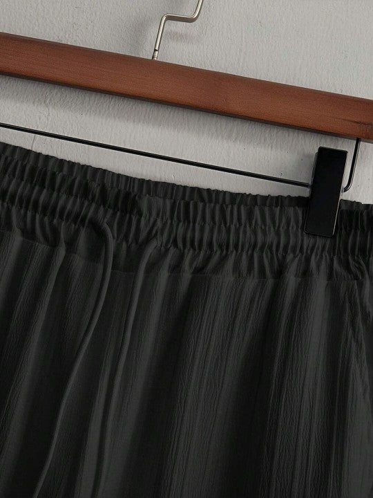 This co-ords set consists of Shirt and trouserBlack striped Shirt ,has a round neck, short sleevesBlack striped trouser, has a drawstring closure