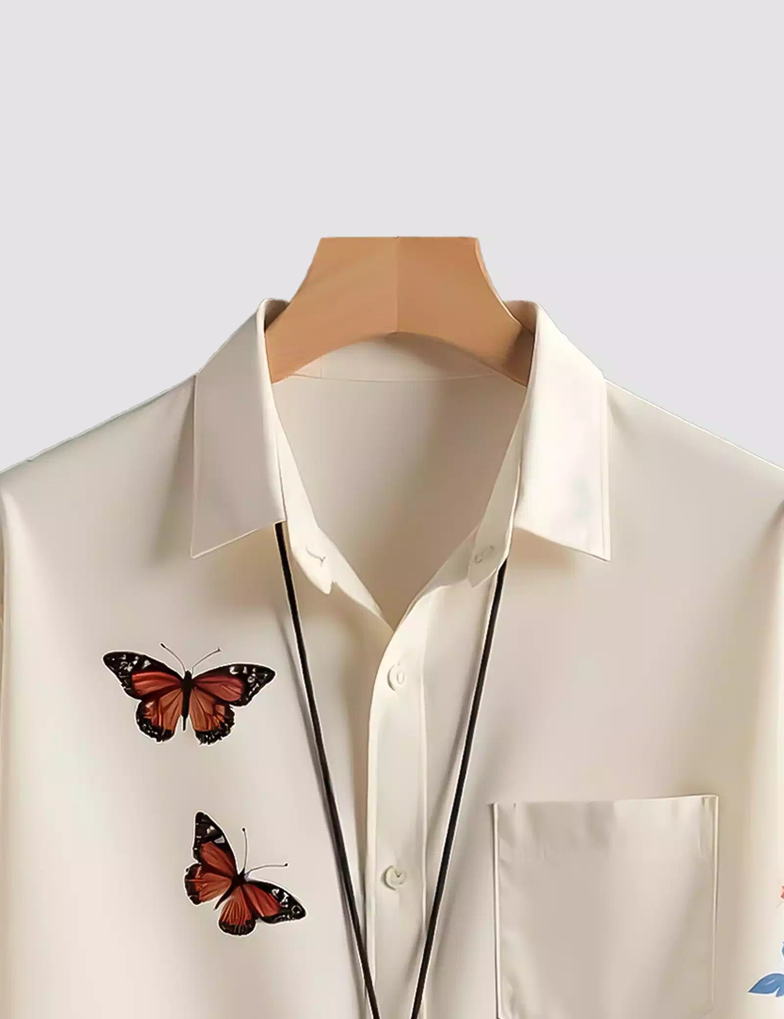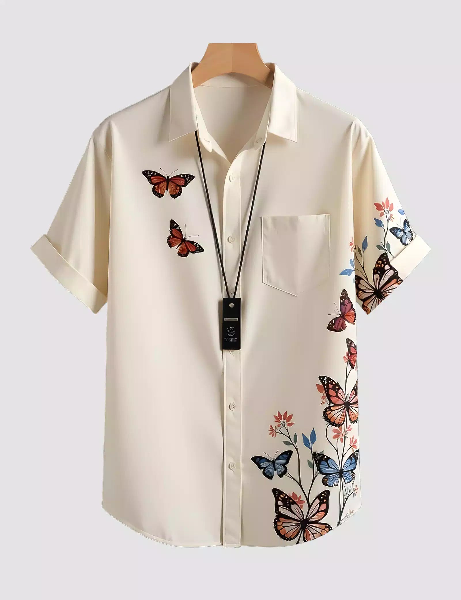 White Butterfly Printed Men’s Half Sleeves Poly Cotton Casual Wear Shirts