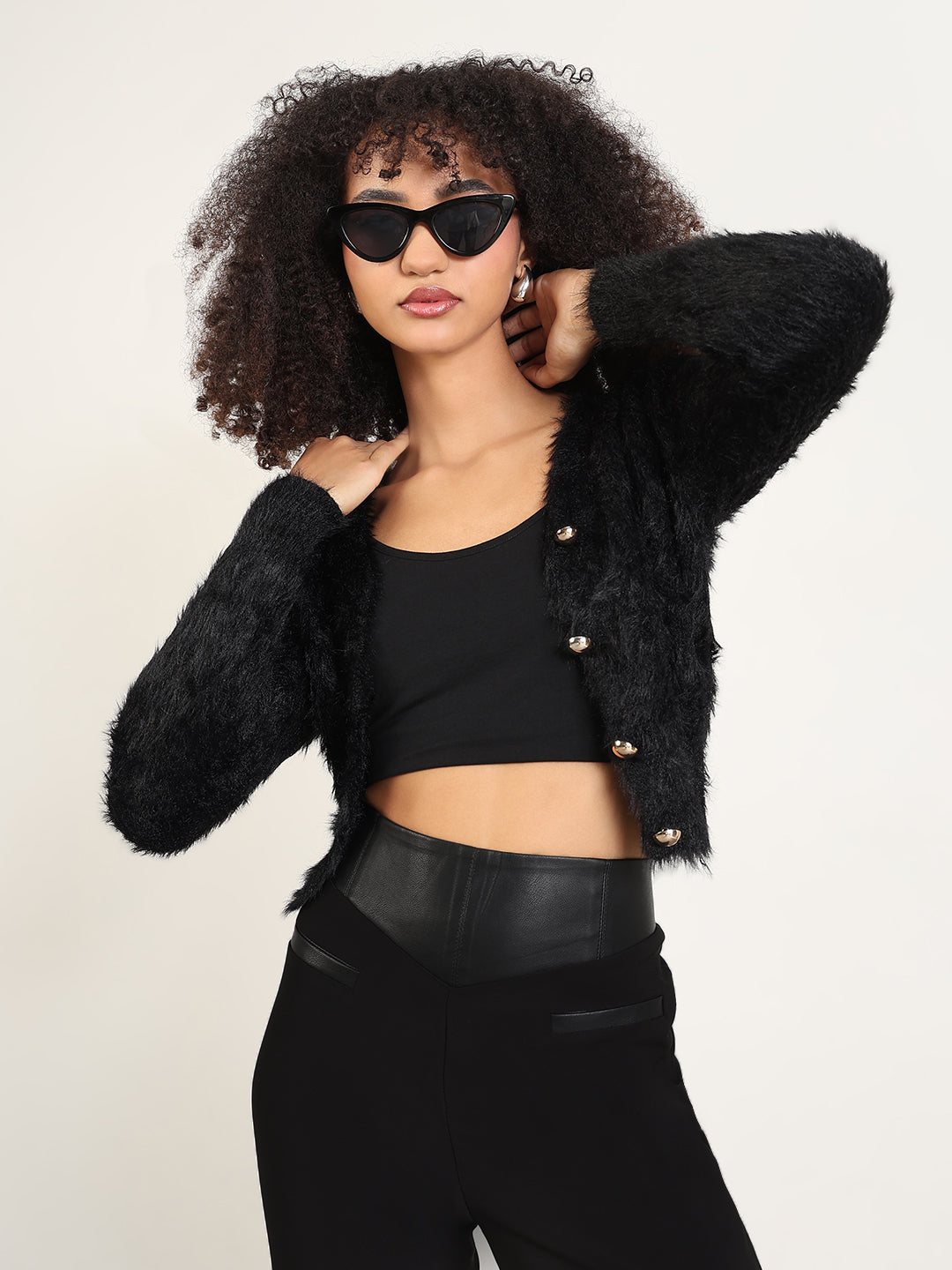 Elevate your winter wardrobe with our Women’s Black Solid V-Neck Crop Shrug. This stylish piece is crafted from high-quality Acrylic material, ensuring both comfort and warmth. Its full sleeves and trendy crop design make it a versatile addition to any casual outfit, perfect for layering over your favorite tops.