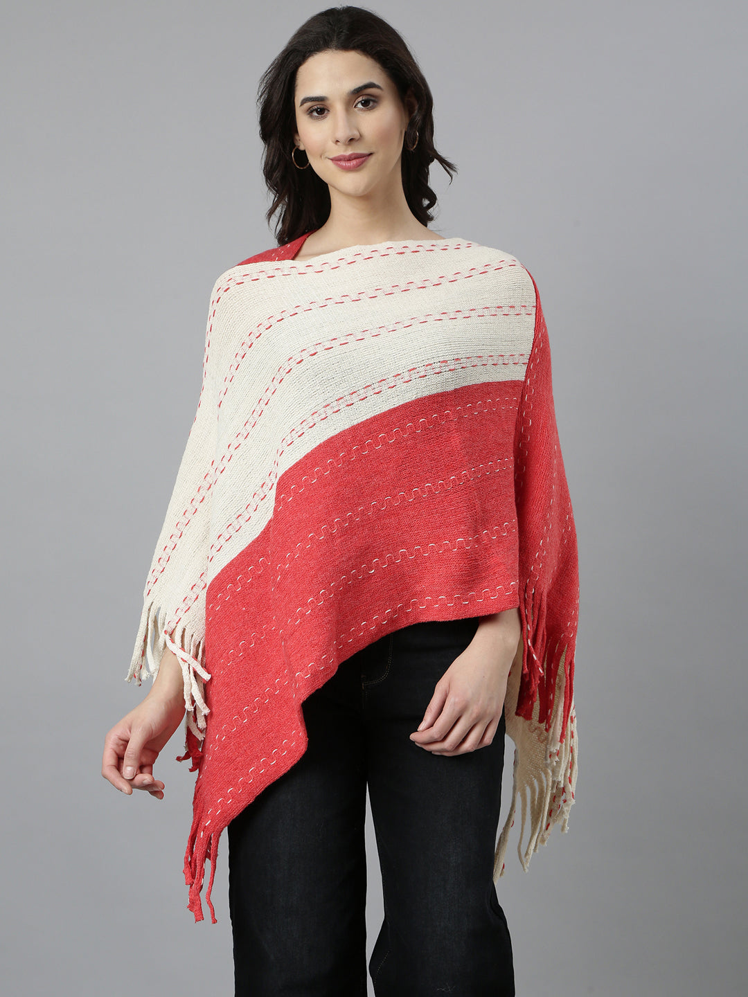 Elevate your wardrobe with our Women Colourblocked Orange Poncho. This stylish piece is designed to offer both comfort and a chic vibe, perfect for any occasion.