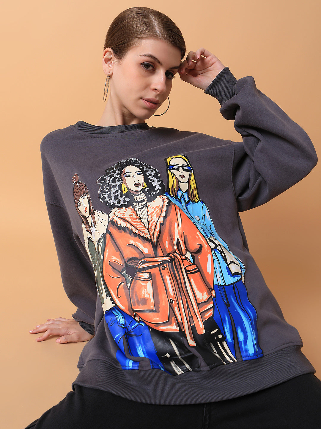 Elevate your casual wardrobe with our Women Graphic Grey Oversized Pullover. This chic and comfortable piece is perfect for layering, providing both style and coziness for any occasion. Crafted with soft fabric, it combines a relaxed fit with eye-catching graphic designs that make a statement.